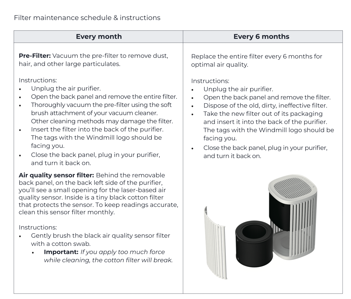 How often should I change my filter?Updated 9 days agoWe recommend replacing your filter every 6 months for optimal air quality. Was this article helpful? YesNo