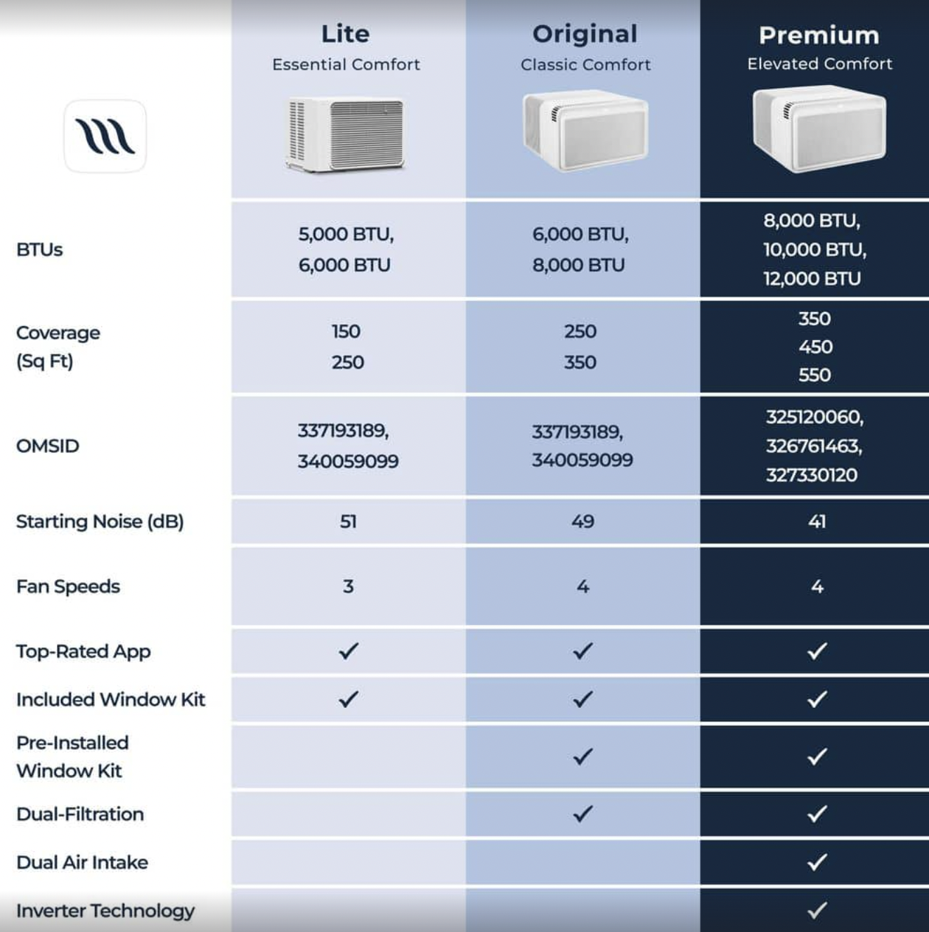 What are the differences between the lite series, original, and WhisperTech?Updated 8 hours agoSee the chart below to compare all our window AC series! Was this article helpful? YesNo